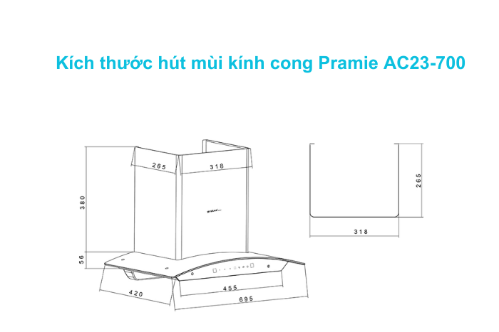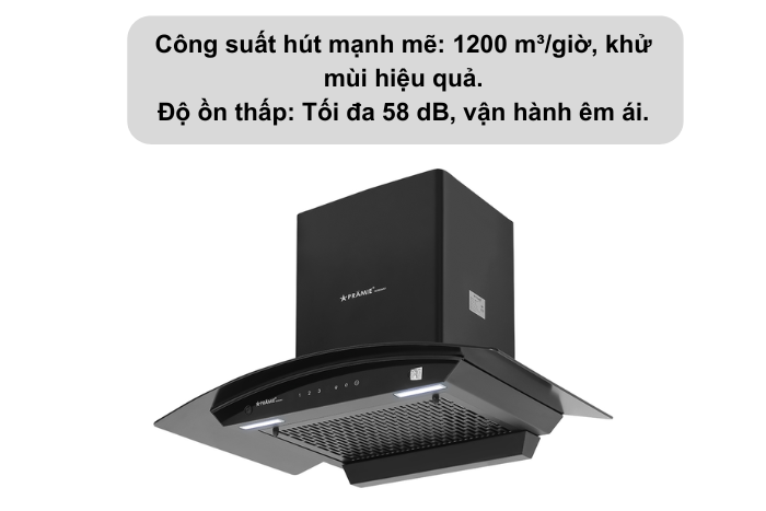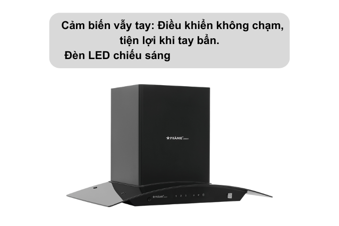 - Hút mùi Pramie AC23-700 trang bị cảm biến không chạm tắt/mở máy.