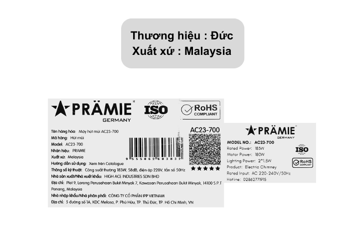 Thuộc thương hiệu Pramie – Đức, được sản xuất và nhập khẩu trực tiếp từ Malaysia.